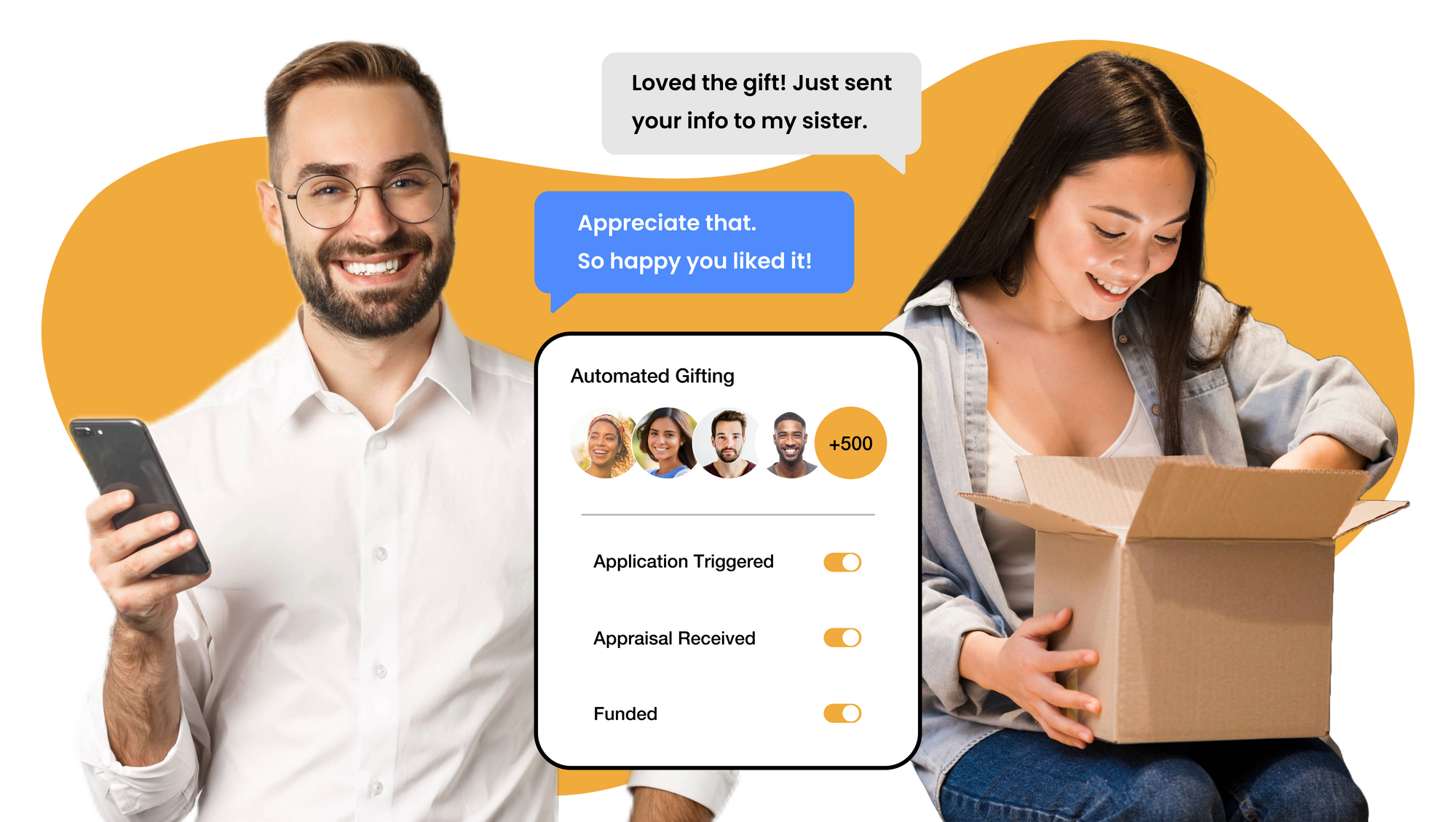 "Switching over to Gift Homie has given our closing gift program a breath of fresh air! Our loan officers and their clients are happy, and we are getting more feedback on the gifts than we ever got before!"